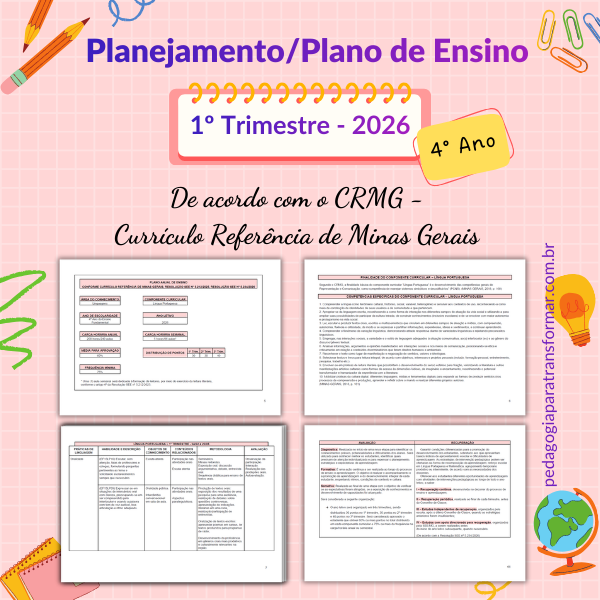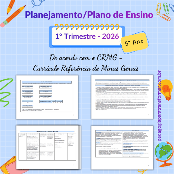 Para professores dos Anos Iniciais que atuam em Minas Gerais, temos os planejamentos prontos e editáveis de acordo com o CRMG (Currículo Referência de Minas Gerais).
